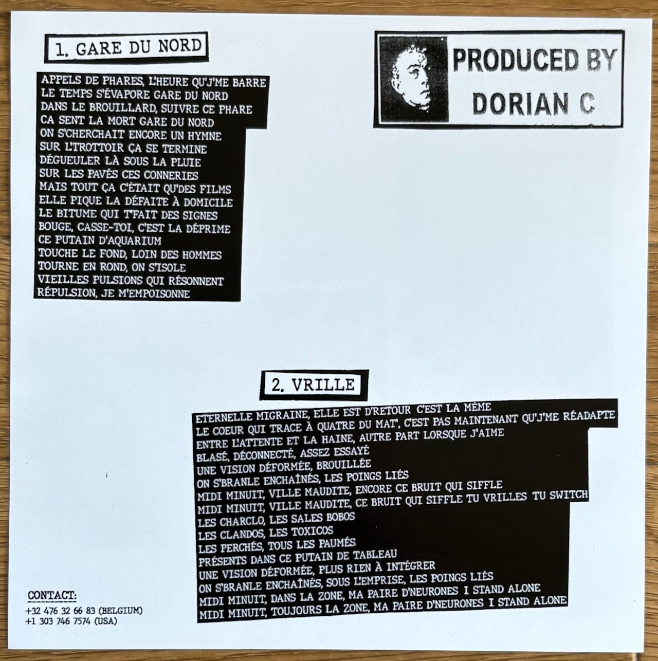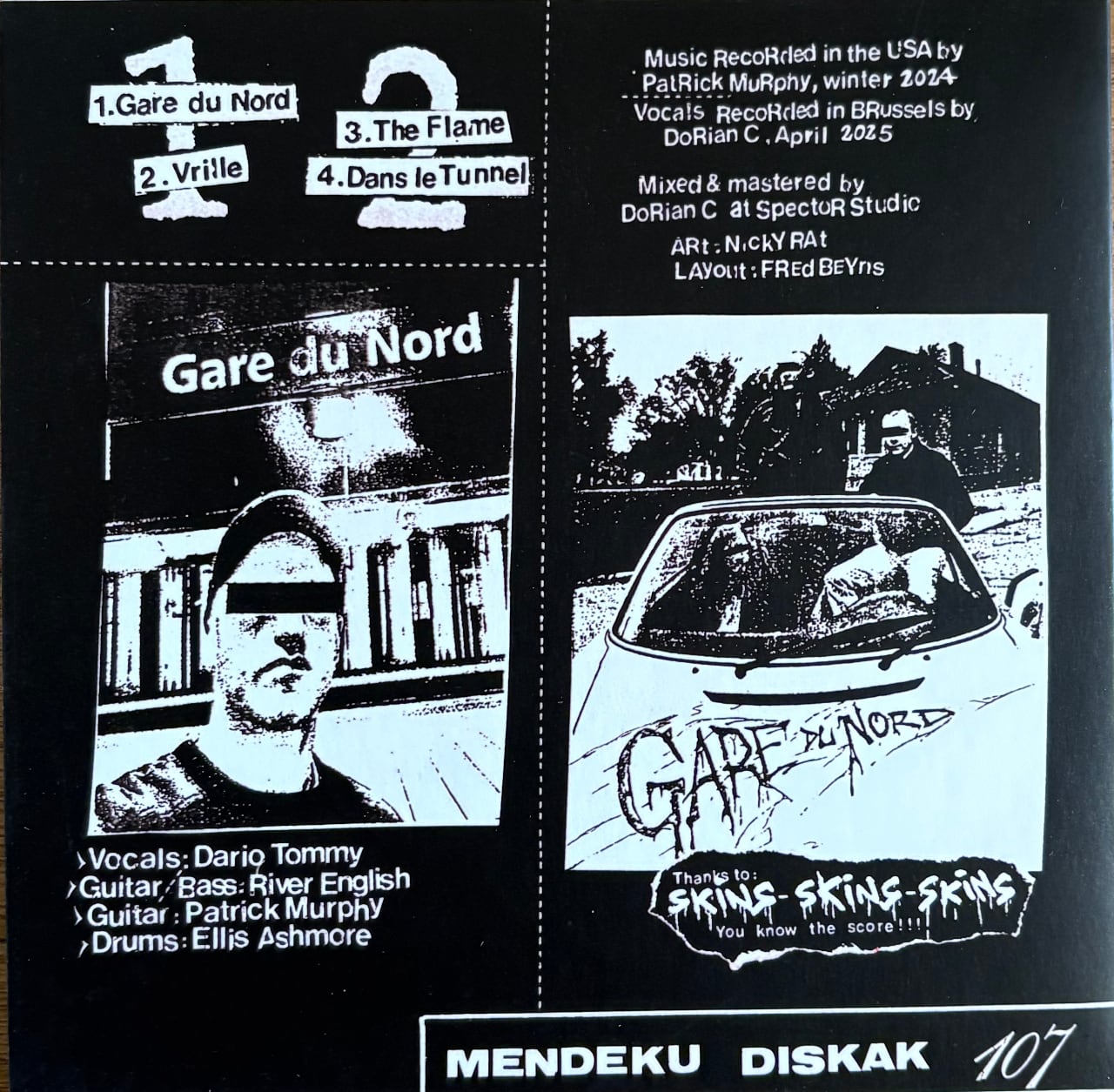 In 2024, there was a joint tour between Belgium's INSTRUCTOR and Denver's DIRECT THREAT. During that tour, DIRECT THREAT's River was inspired by a few songs he had written several years earlier, leading to the launch of the project band 'GARE DU NORD,' with INSTRUCTOR's vocalist Dario approaching it in French. They are inspired by the spirit and sound of iconic 1980s French Punk/Oi! bands such as Warrior Kids, Swingo Porkies, and the legendary Camera Silens. Through these four songs, GARE DU NORD touches on themes of nerves, anxiety, self-doubt, and the competitive drive to overcome them. It's a story of losing oneself in the city and facing harsh realities.