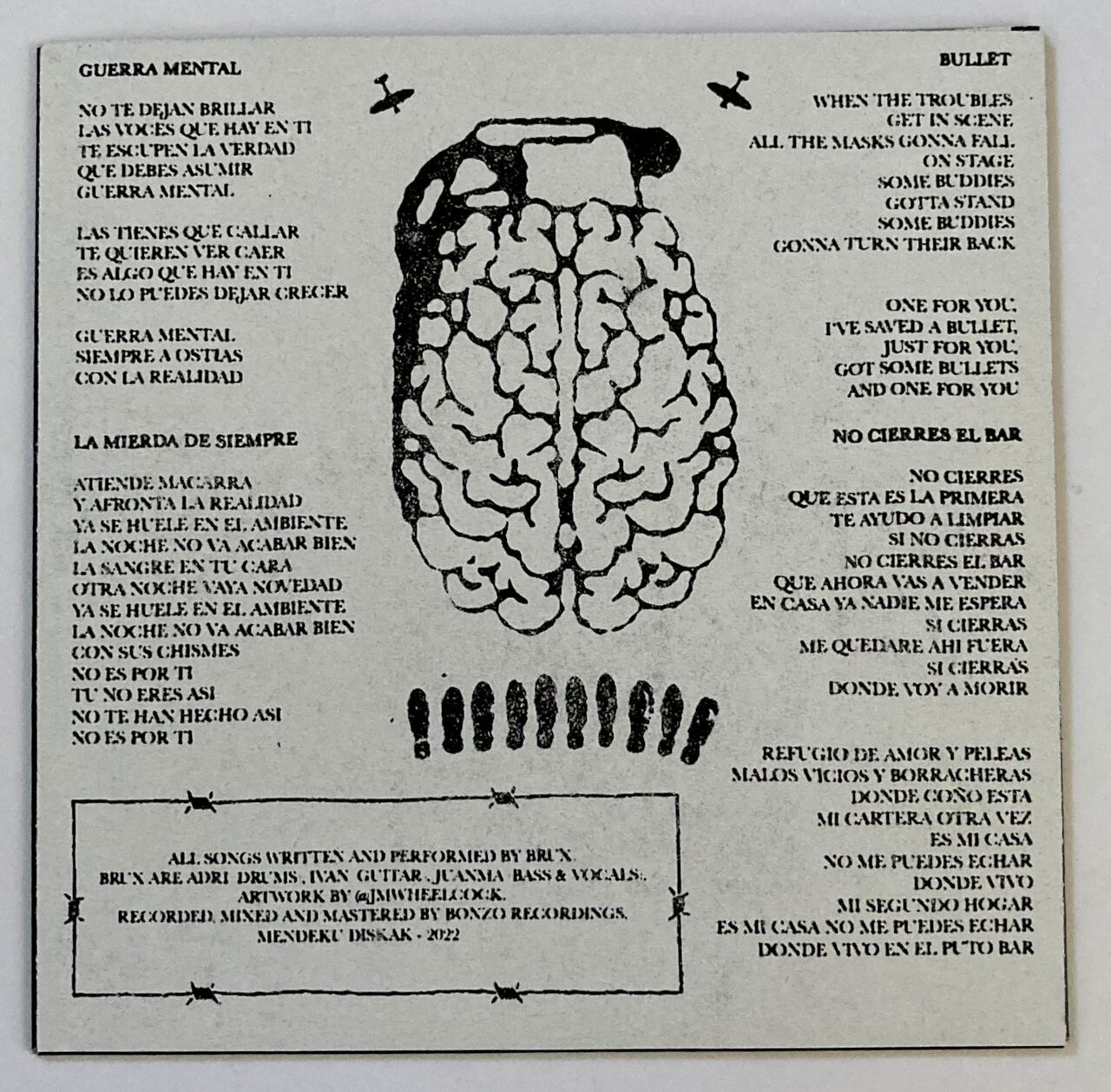 Oi! / Punk band from Barcelona, Spain, BRUX, whose second cassette with four songs was released in 2021, following the first cassette released in 2019, now released for the first time on analogue by MENDEK DISKAK in Spain, in a different song order and with a different jacket design!