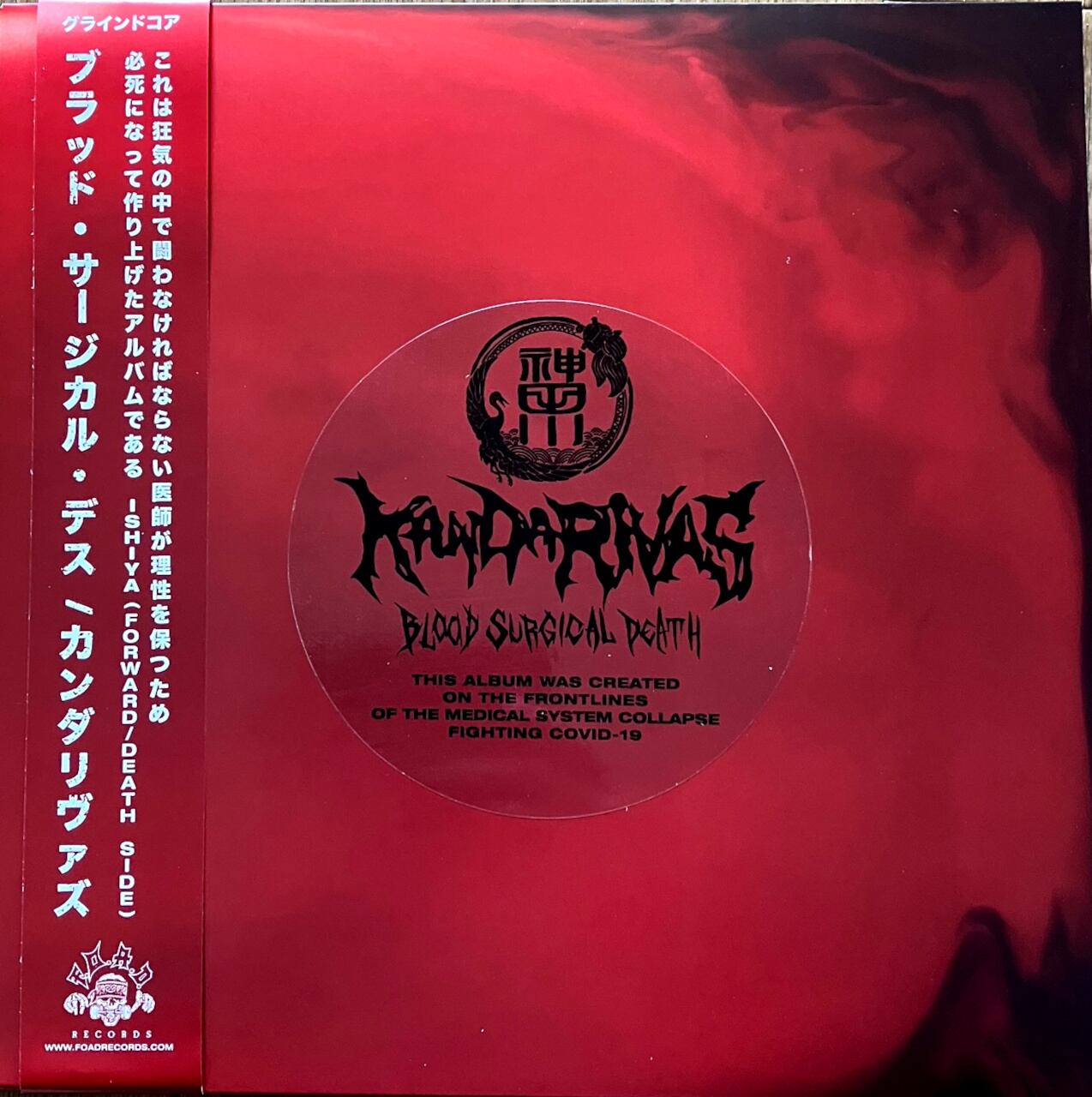 “This album was created on the frontlines of the medical systems collapse fighting Covid-19”. After their debut smasher “Grind surgical shrine” and a few demos, singles and split releases, here’s the definitive consecration of this new grind revelation from Kanda, Tokyo! 13 tracks of punishing fierce grindcore combined with Japanese tribal/experimental breakdowns and the use of ancient traditional instruments, creating a unique psychotic sound all of its own. Founding guitarist/singer Tomoki works as a general thoracic surgeon and donated his own blood for the cover art of this album!! FOR THE FIRST TIME ON VINYL, with a special blood-drenched packaging including OBI strip (with a quote written by Ishiya Death Side/Forward), foldout insert and PVC sticker. Recommended if you also like Unholy Grave, Excreteass, Terrorizer and Macabre.
